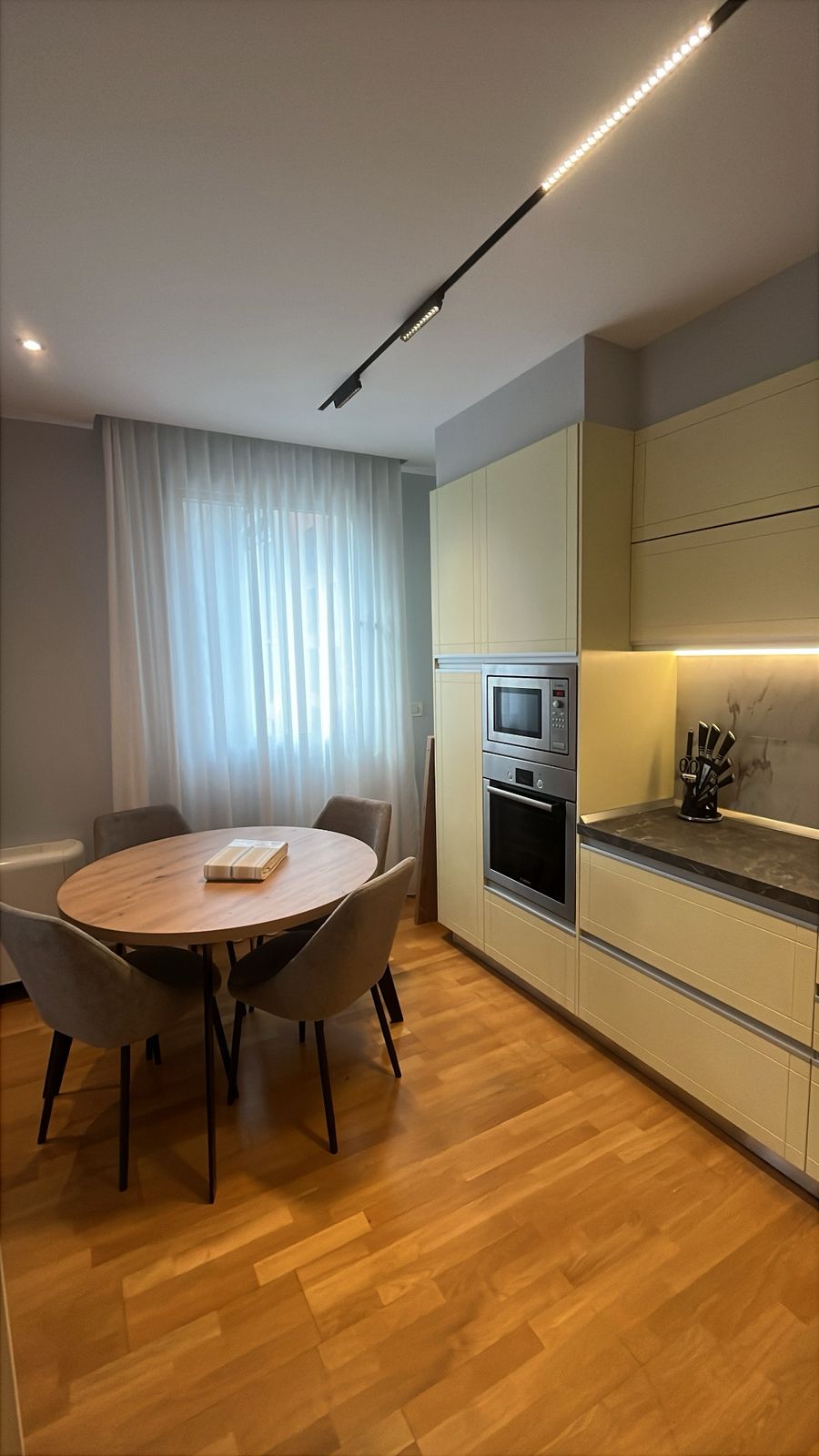 Apartamenti eshte plotesisht i mobiluar dhe i rikonstruktuar ne muajin shkurt. Kuzhina eshte e funksionale dhe me te gjitha elektroshtepiaket e nevojshme.